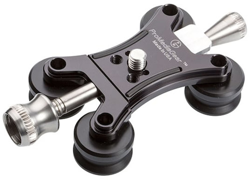 ProMediaGear introduces the world’s first dual action slider, featuring a straight and curved track in one slider body. The two tracks are CNC machined from solid block of lightweight AL 6061-T6 aircraft quality aluminum, and the entire 24inch slider weighs just 3 pounds. It can be used as tabletop slider with fold-able legs on each side as well as attached to a tripod or tripods/light stands via standard threads in the middle or outside edges on both tracks. The sliding track consists of a clamp with 8 roller bearings inside 4 Delrin® custom wheels (2 roller bearings per wheel), providing unparalleled stability and low resistance for smooth motion. The big knob on the carriage opens it up and let’s you attach it back onto other side of the slider, small knob locks the slider into position for easy transportation. Small size, ease of use and lightweight construction are going to be a favorite among run and gun shooters.