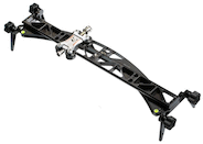 Slider Carriage. The removable sliding carriage is a clamp design with 8 roller bearings inside 4 Delrin custom wheels (2 roller bearings per wheel), ensuring a high degree of stability with low resistance for smooth motion.