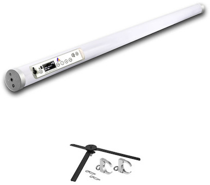 Suitable for cine, theatrical, and event productions, the wireless tube is powered by an integrated battery that will give you 20 hours of runtime on a three-hour charge. The light outputs up to 785 lux at 3.3’ (4000K) and features 16 LED emitters in a 3.4’ long tube that you can mount onto a set or on a stand, hang from a grid, or even hold in your bare hand. The Titan Tube has an impressive CRI/TLCI rating of 96/96, indicating high accuracy in the rendition of color. It uses RGB, mint, and amber LEDs as well as hue, saturation, and intensity control to access millions of custom colors.