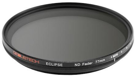 The used Genustech 77mm Eclipse ND Fader Filter is a solid variable neutral density filter providing an exposure reduction of approximately 2 to 8 stops.