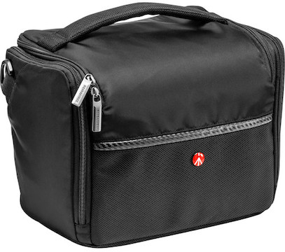 The Manfrotto Active Shoulder Bag 7 will store, protect and hold a medium DSLR and two lenses. Photographers will appreciate the top outward-opening flap for easy access to gear. Your shoulder bag features a zippered closure, dual side pockets, a padded top handle, and a detachable shoulder strap. Made of tough nylon, the Active Shoulder Bag 7 is both strong and durable.