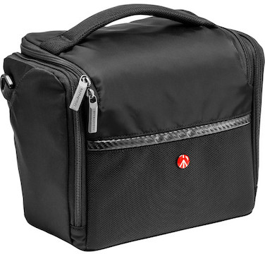 The used Manfrotto Advanced Camera Shoulder Bag A6 is designed to store and protect a mirrorless or small DSLR with standard lens, two extra lenses, and related accessories.