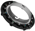 The speed ring features heat-resistant, painted, color-coded softbox pole sockets for quick assembly. It will fit both four- and eight-sided RFi softboxes, each of which have color-coded poles to match the speed ring.