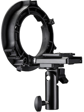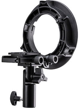 To build your rig it has a 1/4"-20 male center mount for your light and a vertical adjustment knob to precisely place the bracket in the light head opening with a 5/8" (16mm) stand thread and an 8mm umbrella thread. Its quick-mount plate can remain attached to your light for future mounting with less time wasted setting up. A built-in tilter bracket with 5/8" receiver adjusts up to 180° for precise light placement. A tension screw securely locks umbrellas in place, and an adjustable Arca-type mounting plate alloys for precise light placement and maximum output. This bracket maximizes flash with Bowens S-Type and umbrella-based modifiers.