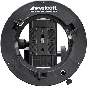 Use this used Westcott Quick Mount S-Bracket to mount umbrellas and modifiers onto compact lights without causing unwanted stress that can damage your delicate gear.