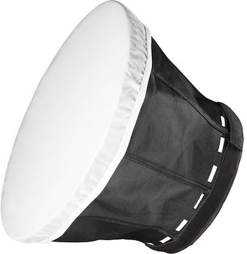 The used 12" Round Collapsible Softbox for Solix LED Lights from Westcott is a modifier that attaches to the light with elastic straps and softens the output of its bright LEDs.