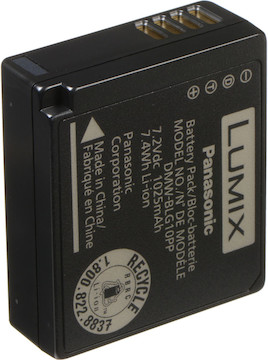 The used DMW-BLG10PP Li-ion Battery for Select LUMIX Cameras from Panasonic produces 7.2V and has a capacity of 1025 mAh. This battery is ID secured, and it’s compatible with the Lumix DMC-GF6, DMC-GX7, and DMC-LX100 cameras.