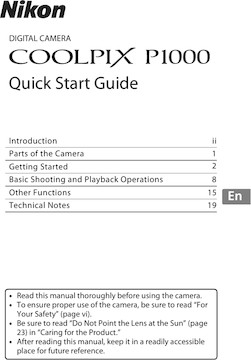 This is a used paper manual for the Nikon Coolpix P1000 camera.
