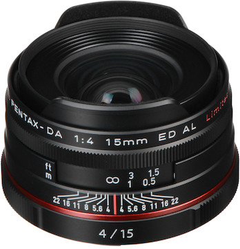 The black HD Pentax DA 15mm f/4 ED AL Limited Lens from Pentax is a compact prime wide-angle lens providing a 35mm-equivalent focal length of 23mm. The lens’ optical design includes features extra-low dispersion glass and one hybrid aspherical elements to minimize chromatic aberrations and limit distortion in order to enable a natural-looking expansive angle of view that is well-suited to both indoor and outdoor scenes. A high-grade multi-layer HD coating has been applied to lens elements to help minimize flare and ghosting for enhanced contrast, clarity, and color fidelity and a rounded seven-blade diaphragm contributes to an aesthetic out-of-focus quality to benefit shallow depth of field imagery. Additionally, an SP Protect coating has also been applied to the front lens element to effectively protect it from dirt, oil, and finger prints.
