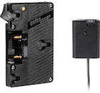 The Gold mount battery’s power is greater than the camera’s standard battery, providing a longer runtime. The plate connects to the camera via a dummy battery, attached to an integrated 16" cable. A built-in regulator ensures that the correct voltage is delivered to the camera. The plate also features two D-Tap ports that provide 12 to 16V of power for accessories.