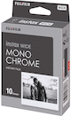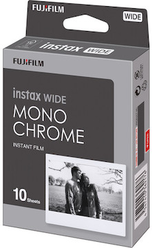 Grab this 10-sheet pack of FUJIFILM INSTAX Wide Monochrome Instant Film to capture and print incredibly sharp and clarified black & white film photos through the Fuji INSTAX WIDE Evo Hybrid Instant Film Camera! Each of the 10 exposures deliver a glossy, grained, and toned 3.9 × 2.4″ sheet of film with a simple, white border. This film pack sports an ISO 800 film speed, allowing clear capture in even low lighting.