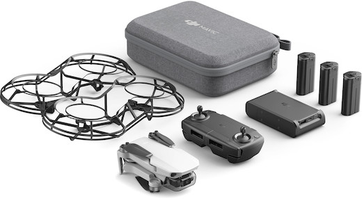 Fly More Combo. This configuration of the Mavic Mini is designed for the drone enthusiast and professional that wants to go out in the field with enough gear for longer shoots. Compared to the stock Mavic Mini, the Fly More Combo gives you two additional batteries, two extra pairs of propellers, an extra micro-USB cable, and a dozen extra spare screws for any on-site repairs. This combo also includes accessories the stock Mavic Mini doesn’t have, such as a 360° propeller guard, 2-way charging hub, 18W USB charger, and a carry bag.