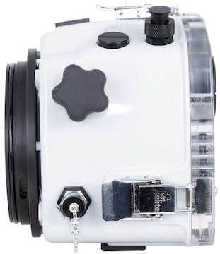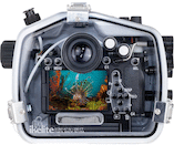 Suitable for scuba, snorkeling, surfing, the pool, and any application in or around the water, the 200’ depth-rated housing features a manual hot shoe connection for triggering optional external strobes via sync cords. The use of an optional TTL hot shoe and converter will allow for TTL operation with compatible Ikelite DS strobes.