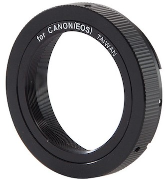 The Celestron T-Ring for Canon EF-Mount Cameras allows you to use an EF-mount camera to capture photos with your Celestron telescope. The T-ring attaches to the lens mount of your camera, securing via a sturdy bayonet flange that locks in place just like a lens. Then you can attach the other side of the T-ring to your telescope.