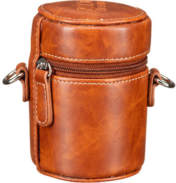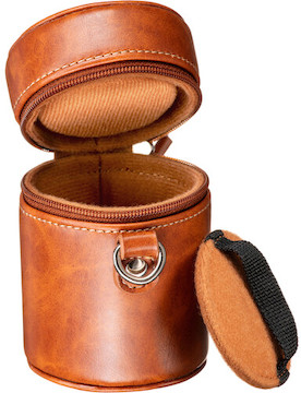 It is made of a soft polyurethane that looks like leather to give it a refined and understated look. The interior measures 4 × 2.8″, features a soft flannel interior lining that won’t scratch your lens finish when you insert it or withdraw it, and a secure zipper at the top closes the case. With your lens safely stowed in the case, you can put it in any bag or pack for those times when you want to bring your camera, but don’t want to carry a big or obvious camera bag.