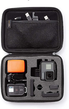 Small 9×7×2.5″ black case for a GoPro camera and accessories; compatible with all GoPro cameras, including GoPro HERO6, GoPro HERO5 Black, HERO5 Session, HERO4 Black, HERO4 Silver, and HERO Session.