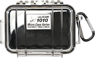 The used Pelican 1010 Micro Case in clear black is made to protect valuable small items. This case has the same look as the larger Pelican case.