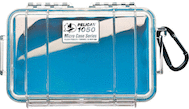 The used Pelican 1050 Clear Micro Case Blue is an unbreakable, watertight, airtight, dustproof, chemical resistant and corrosion proof case. It is made of copolymer and has a matching liner. The case has a speed lock and a clear purge cap.