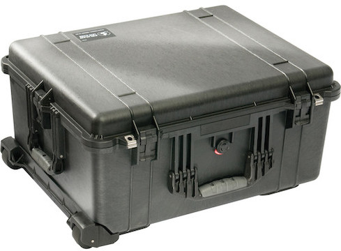 The used black Pelican 1610 Large Case without Foam is an unbreakable, watertight, airtight, dustproof, chemical resistant and corrosion-proof hard case used to carry any kind of equipment.