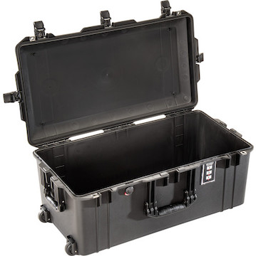 Store, transport, and protect your gear with the used black Pelican 1626 Wheeled Air Case without Foam.