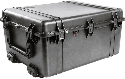 The used black Pelican 1690 Transport Case Without Foam is an unbreakable, watertight, airtight, dust-proof, chemical-resistant and corrosion-proof hard case used to carry any kind of equipment that needs to be protected from the elements.