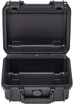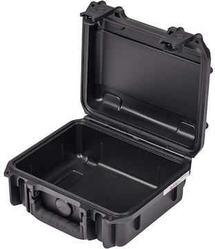 The used black SKB 3I-0907-6-L Small Mil-Std Waterproof Case 4" Deep without Foam is an injection-molded, ultra-high-strength, polypropylene-copolymer resin case.