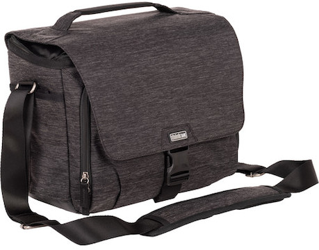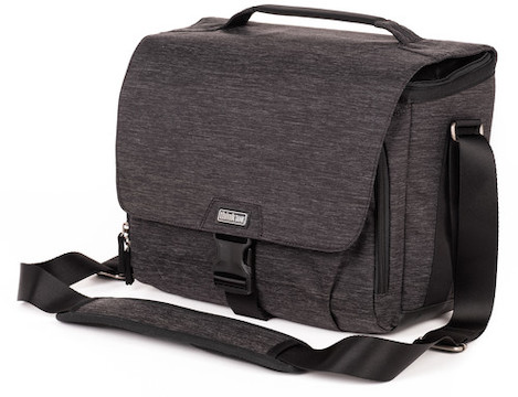 This used graphite gray Vision 13 Shoulder Bag from Think Tank is a versatile, messenger-style camera bag that can accommodate a medium-sized DSLR with two to four lenses, including an attached 24-70mm f/2.8 lens, and a detached 70-200mm f/2.8 lens.