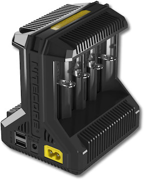 The used NITECORE i8 IntelliCharger is a powerful, universal battery charger with 8 charging bays.