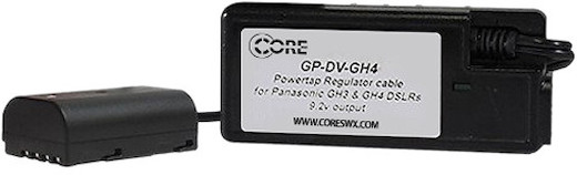 This used Switronix Regulator Block connects the separately available Core SWX PowerBase 70 battery to the Panasonic GH4 camera.