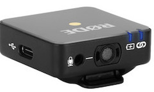 This is a RODE GO TX transmitter from the RODE Wireless GO Compact Digital Wireless Microphone System.