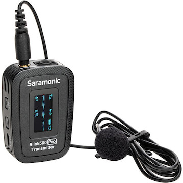 The tiny transmitter weighs just over 1 oz and features a built-in clip and an omnidirectional microphone, making it simple to attach to a lapel or shirt for quick and easy true-wireless audio. For a more discreet look, you can plug the included SR-M1 lavalier microphone into the 3.5mm input jack and use the Blink 500 Pro TX as a beltpack transmitter. The system uses digital technology in the 2.4 GHz bandwidth to ensure reliable wireless transmission with a maximum line-of-sight range of 328’.