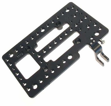The used Berkey System Top Mount Accessory Plate mounts to the four existing 1/4-20 holes on the Sony F5 & 55 camera body, giving you all the 1/4-20 and 3/8-16 tapped mounting holes you will likely ever need.