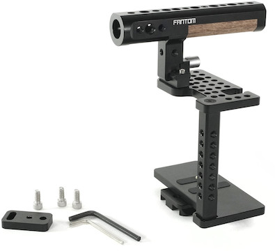 This aluminum Camera Cage from Fantom Rigs provides accessory mounting and quick release convenience for your Blackmagic Pocket Cinema Camera 6K or 4K. The sturdy top handle allows you to carry your camera safely, and its wood inlay improves comfort and grip.
