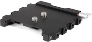 The plate is designed to fit the RED Epic, Scarlet, and Dragon cameras, with attachment to the cameras possible via two included 3/8"-16 screws. Once attached, you can slide your camera on and off of an optional dovetail simply by turning the plate’s thumbscrew and pushing down on the locking pin found on the dovetail.