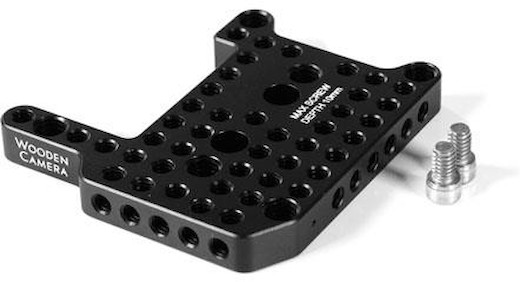 The used Wooden Camera Top Plate for FSony NEX-FS700 camera features an array of 1/4-20 holes in standard spacing. Multiple 3/8-16 holes for large accessories.