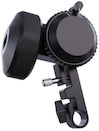 The design of the unit allows you to adjust the handwheel to almost any position without affecting the unit’s performance. This allows you to adjust the handwheel for your comfort, and it allows you to pull focus from above or below the camera without forcing your hand into an uncomfortable position or needing to use an available focus whip. The unit can also adjust to accommodate pulling focus with virtually any diameter lens that you can use with 15mm support rods, or with 19mm studio rods by using available 19mm to 15mm rod adapters.