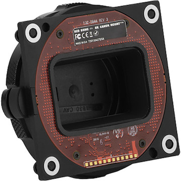 The used aluminum Full-Frame DSMC VV Canon Mount from RED DIGITAL CINEMA provides an EF/EF-S compatible lens port for your DSMC2 8K VV full-frame camera. This mount supports autofocus, electronic iris control, and even touch focus for select lenses.