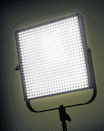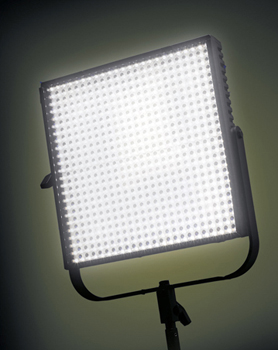 High Power, Low Energy Consumption. The Litepanels 1×1 LED Flood is a 1-foot square array of over 100 LEDs that emits the equivalent of 500 watts 5600K (daylight-balanced) light. It draws just 37 watts of power via the included AC adapter, mounts via a 5/8-inch adapter to a light stand or pole, and weighs only 3 pounds.