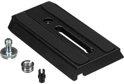 It comes supplied with one 1/4"-20 screw and one 3/8"-16 adapter bushing, and features a location (video) pin.
