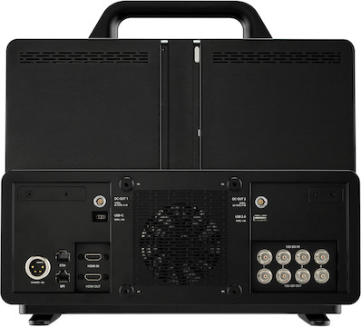 Other Notable Features. There is one USB Type-C and one USB Type-A port available at the rear that can power accessories with a maximum draw of 5V per port. A second Type-A output is one the front of the monitor. The Cine 13" can be powered via the included AC adapter, and the unit features a top handle to move the monitor around set, multiple 1/4"-20 and 3/8"-16 accessory mounting points, and feet to keep it upright. Need a VESA mount? We recommend the Manfrotto TetherGear VESA Monitor Mount. The 5.0.0 and 5.0.1 firmware updates now support multi-view output as well.