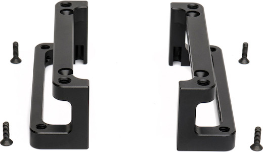 The SmallHD Mounting Cage for 503 UltraBright Monitor includes two metal brackets that attach to the monitor and provide mounting points for accessories. The brackets mount on the left and right sides of the monitor and provide 1/4"-20 and 3/8"-16 threads for accessories. They also feature slots for attaching the optional dedicated sun hood for this monitor, which secures by magnetic mini-rods into these slots. Four screws are included for attaching the cage to the monitor.