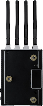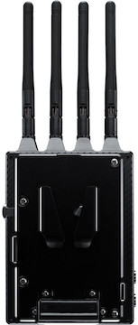 SDI & HDMI Input & Output. This transmitter accepts video via 12G-SDI or HDMI and can output SDI and HDMI with cross conversion between the two. An 12G-SDI loop-through connector allows passthrough of transmitter video to monitors and secondary wireless devices.