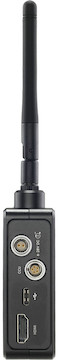 HDMI Only. This receiver can only output HDMI footage—it doesn’t have an SDI port. An HDMI loop-through connector allows passthrough of transmitted video to monitors and secondary wireless devices.