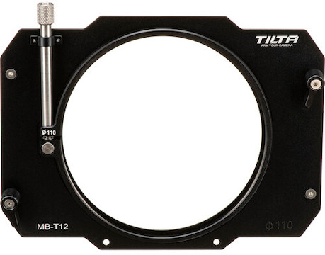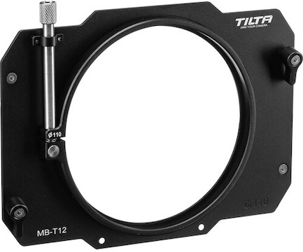 The used 110mm Clamp-On Adapter for MB-T12 Matte Box from Tilta is used to attach the matte box to a lens with a 110mm front diameter.