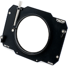 The adapter attaches to the lightweight 4 × 5.65″ matte box via keyhole slots and fastens to the lens using a screw-on clamp. This aluminum and stainless steel adapter has a rectangular outer shape and a circular inner design.