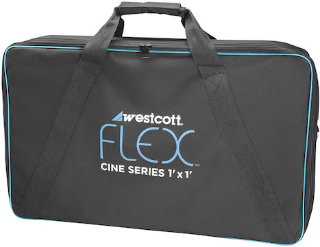 The used 1 × 1′ Flex Cine Gear Bag from Westcott is a soft yet durable carry case with a plastic-plated exterior. It conveniently fits select Flex 1 × 1′ LED kits in fully-assembled form, allowing you to pack and unpack quickly.