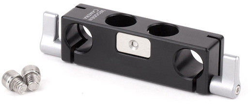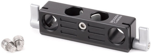 The used DSLR 15mm Bracket from Wooden Camera provides 15mm lightweight rods at the correct lens height for larger DSLR cameras when combined with Quick Cage.