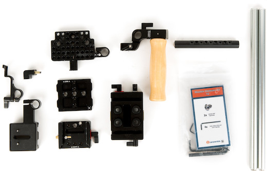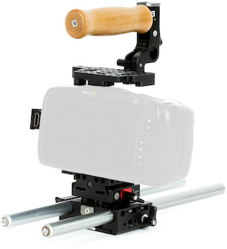 The Wooden Unified Base Accessory Kit prepares a BMPCC4K or BMPCC6K for 15mm rod accessories & adds threaded 1/4" & 3/16" mounting points. Key features include:
