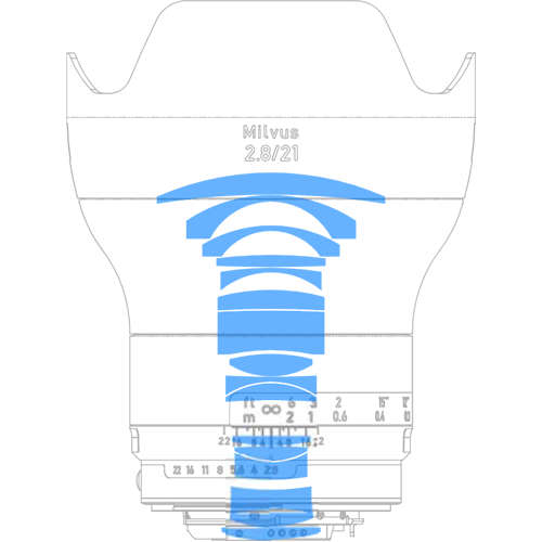 Advanced Optics. The Zeiss Milvus ZE 21mm f/2.8 Distagon for Canon follows with Zeiss’s pedigree for cutting-edge optics. It features four anomalous partial-dispersion glass elements within a floating-elements system to combat distortions and aberrations while retaining sharpness and clarity at any focus distance. The enhanced T* anti-reflective coating controls ghosting and flare for a color-neutral image that still flaunts that famous high micro-contrast “Zeiss look.”