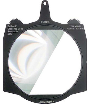 The 4 × 5.6 Lindsey Optics +2 Diopter Rota-Split 50% Filter is a rotating split-field filter that you can use to create dramatic near/far effects. Key features include: